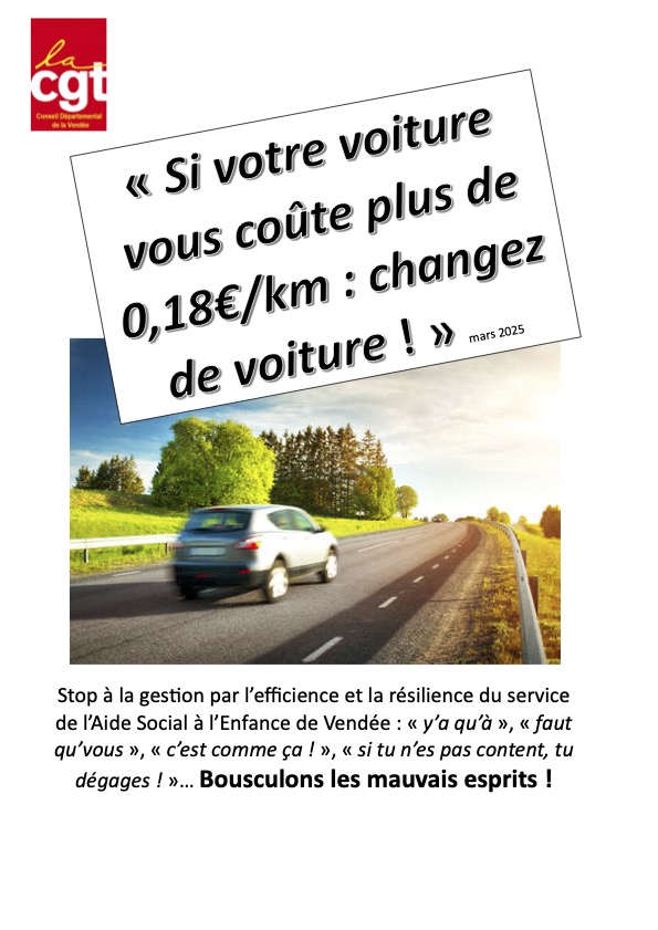 La CGT CD85 ne ressent aucun investissement des élus politiques pour s’attaquer aux problèmes. Peut-être que l’une des raison est qu’ils n’en retirent aucune gloire: “ce sont des coûts” (de fonctionnements). Aussi ASE, PMI, FDE (Foyer De l’Enfance) sont gérés par l’efficience et la résilience: “y’a qu’a“; “faut qu’vous“; “si tu n’es pas content tu dégages“; “c’est comme ça“; “si votre voiture vous coûte plus de 18cts/km, changez de voiture“…